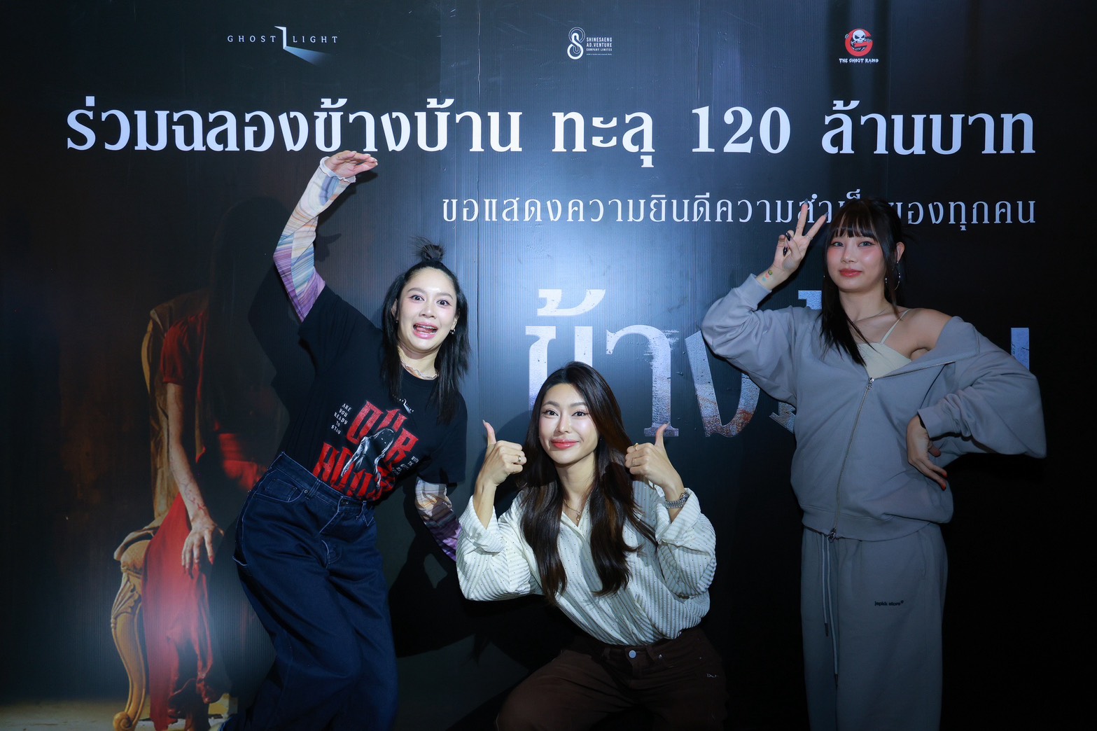 หลังภาพยนตร์หลอนระทึก “ข้างบ้าน” ผลงานการกำกับของ โขม-ก้องเกียรติ โขมศิริ เข้าฉายเพียง 40 วัน ก็ทำรายได้ทะลุ 120 ล้านบาท เมื่อวันก่อน คุณชัยวัฒน์ มิ่งไม้ ประธานเจ้าหน้าที่บริหาร บริษัท ฉายแสง แอด.เวนเจอร์ จำกัด, แจ็ค เดอะ โกสท์ เรดิโอ และ โขม-ก้องเกียรติ นำทีมจัดปาร์ตี้สุดปังรวมทีมนักแสดงเบื้องหน้า ได้แก่ อาเล็ก-ธีรเดช เมธาวรายุทธ, กชเบล-ศรัณย์รัชต์ เผือกพิพัฒน์, วิทย์-พชรพล จั่นเที่ยง, วิยะดา อุมารินทร์, นุ่น-ภาณิศา อุดมเรืองเกียรติ, ฝ้าย-รุจรวี จีระเดชากุล, พีช อีทแหลก และทีมงานเบื้องหลังมาร่วมฉลองความสำเร็จร่วมกัน