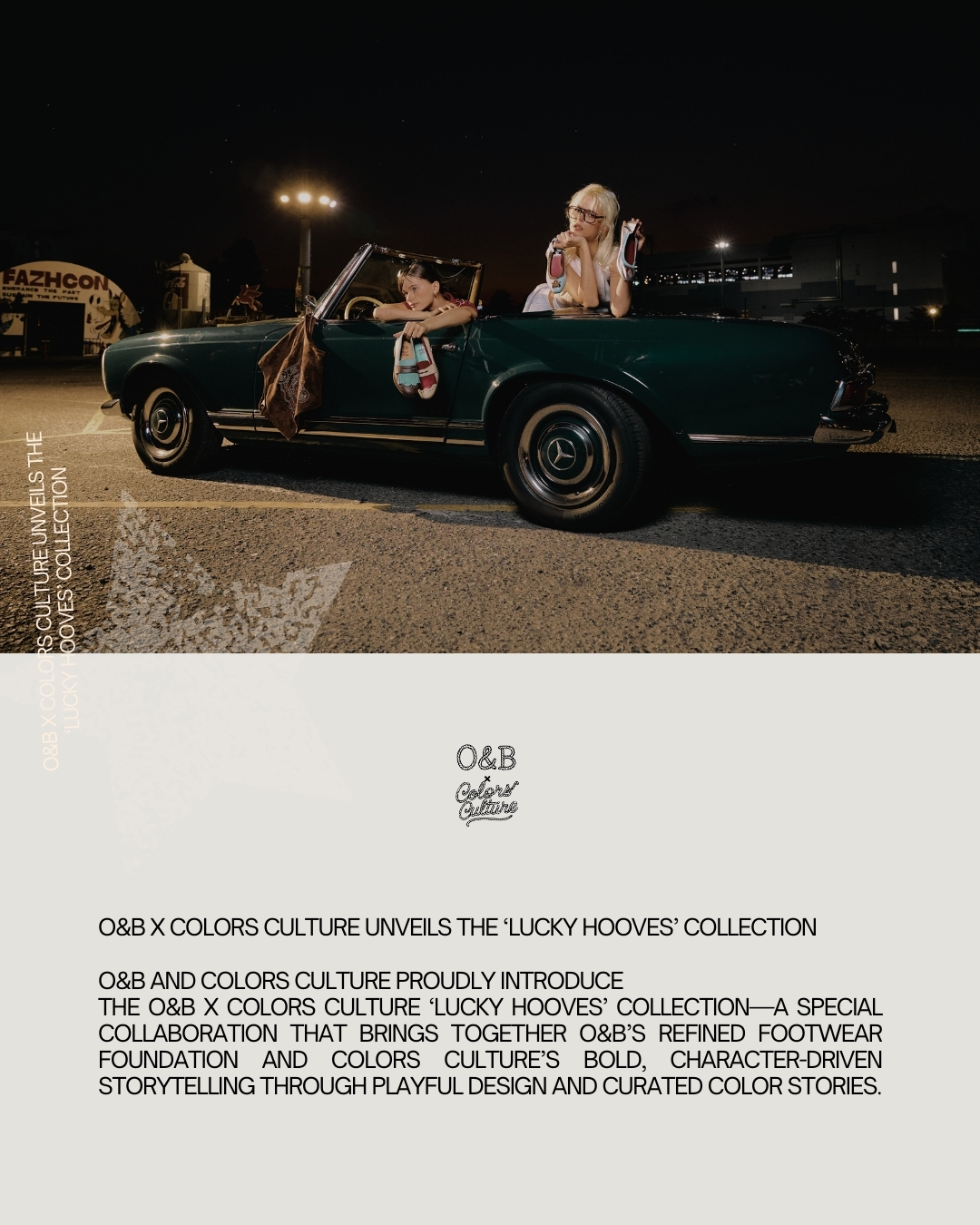 กรุงเทพฯ ประเทศไทย — COLORS CULTURE แบรนด์แฟชั่นไลฟ์สไตล์ที่ก่อตั้งโดย พีพี กฤษฏ์ อำนวยเดชกร และ O&B ภูมิใจนำเสนอคอลเลคชันพิเศษ COLORS CULTURE x O&B ‘LUCKY HOOVES’ การคอลแลบที่ผสานความเชี่ยวชาญด้านรองเท้าและงานคราฟต์ของ O&B เข้ากับการเล่าเรื่องผ่านคาแรกเตอร์และสีสันอันเป็นเอกลักษณ์ของ COLORS CULTURE ถ่ายทอดออกมาเป็นดีไซน์สนุกมีสไตล์ พร้อมเรื่องราวสี (color story) ที่คัดสรรมาอย่างตั้งใจ