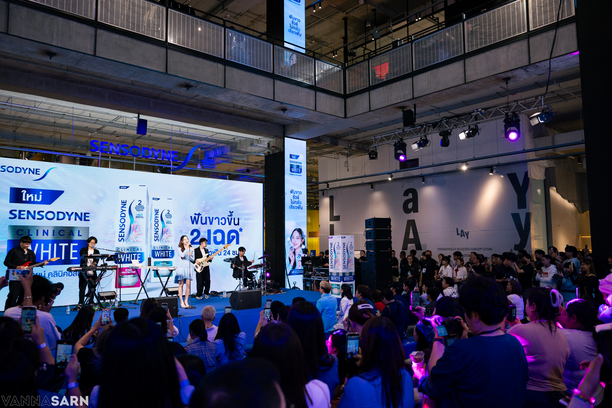 ภายในงาน Sensodyne Clinical White ฟันขาวชัวร์ ไม่กลัวเสียวฟัน เต็มไปด้วยความสนุกสนานโดยเฉพาะช่วงพูดคุยสุดเอ็กซ์คลูซีฟกับ ‘อิ้งค์ วรันธร’ ที่มาพูดถึงความคุ้นเคยและใช้ยาสีฟันเซ็นโซดายน์มาตั้งแต่เด็ก จากการแนะนำของสมาชิกในครอบครัว รวมทั้งบอกเล่า Insight ที่ติดการดื่มกาแฟเป็นชีวิตจิตใจ ไม่พ้นความกังวลต้องมองหาตัวช่วยแก้ปัญหาฟันเหลือง รวมทั้งมีประสบการณ์จริงจากการฟอกสีฟันเพราะอยากมีฟันขาวเร็วๆ แต่ต้องเจอผลข้างเคียงคืออาการเสียวฟันหนักมากจนต้องกินยาแก้ปวด รบกวนการใช้ชีวิตประจำวันและการทำงาน โดยเฉพาะอย่างยิ่งการร้องเพลง แต่เมื่อได้ทดลองใช้ยาสีฟัน Sensodyne Clinical White ทั้งสูตร Enamel Strengthening และ สูตร Stain Protector ก็ประทับใจมากเพราะทำให้สีฟันขาวขึ้นทั้ง 2 เฉด ลดอาการเสียวฟัน 24 ชม. ไม่ทำลายเคลือบฟัน ตอบโจทย์ตัวเลือกการทำฟันขาวที่ตามหาอยู่ได้ 100% แถมยังช่วยให้ลมหายใจหอมสดชื่น เพิ่มความมั่นใจได้เต็มประสิทธิภาพอีกด้วย นอกจากนั้นอิ้งค์ยังมีเกมสุดพิเศษมาร่วมเล่น และ โชว์มินิคอนเสิร์ตจากวงดนตรีแบบ full band ยกทักเพลงฮิตมาโชว์แบบจัดเต็ม อาทิ พบรัก คิดถึงเธอกลางวัน ฝันถึงเธอกลางคืน สายตาหลอกกันไม่ได้ เพื่อมอบความสุขพร้อมสร้างรอยยิ้มให้กับแฟนๆในงานครั้งนี้อีกด้วย