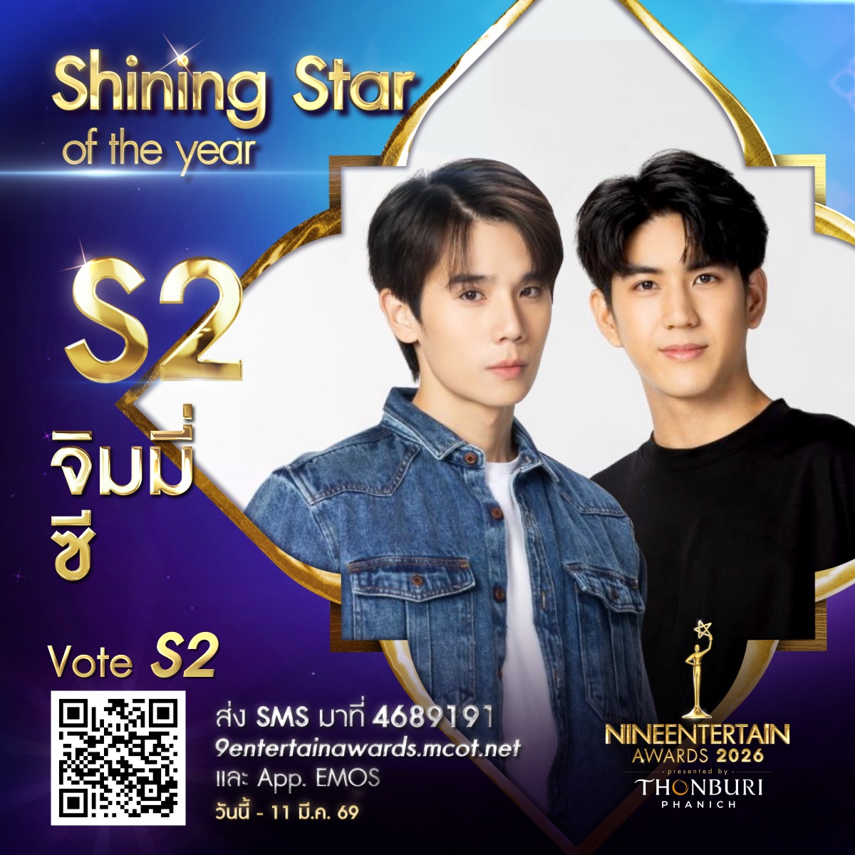 ใจดุ๊กดิ๊ก เรามีเราเราต้องโหวต กับผู้เข้าชิง “Shining Star of the Year #9entawards2026xThonburiPhanich |